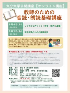 「教師のための音読・朗読基礎講座」のご案内(対象:現職の小学校・中学校・高等学校の教員 )
