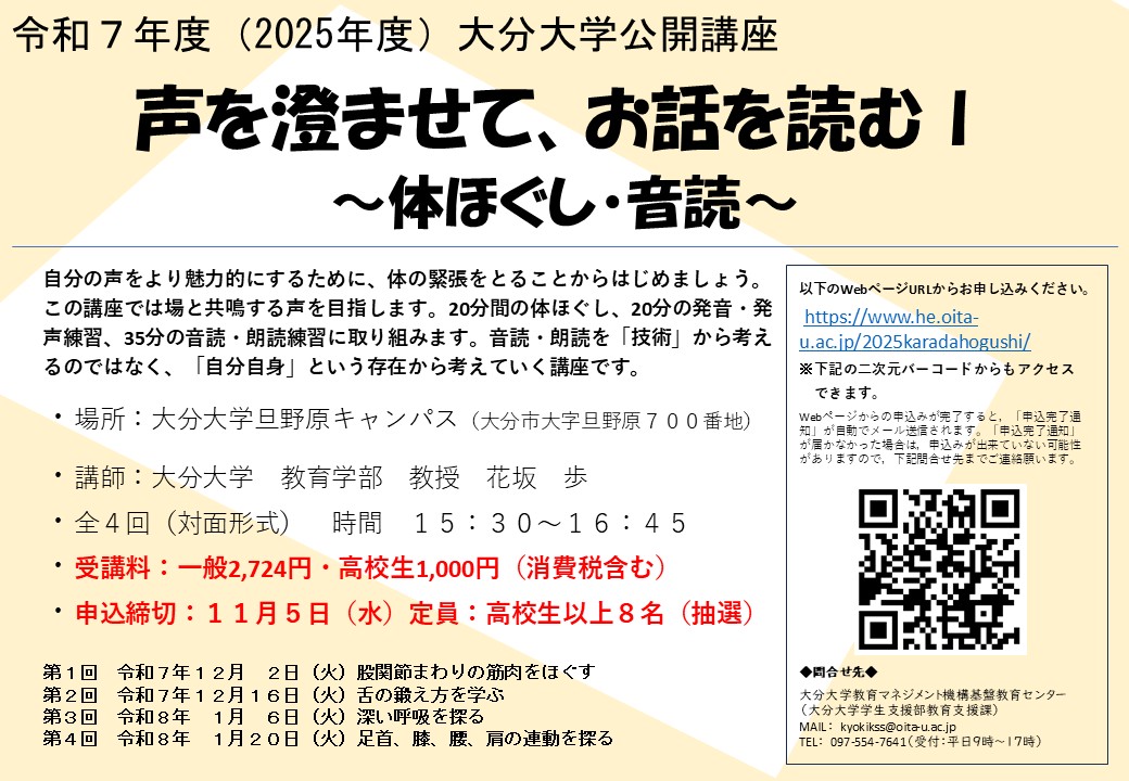 【12月2日~1月20日】令和7年度(2025年度)大分大学公開講座「声を澄ませて、お話を読むⅠ~体ほぐし・音読~」